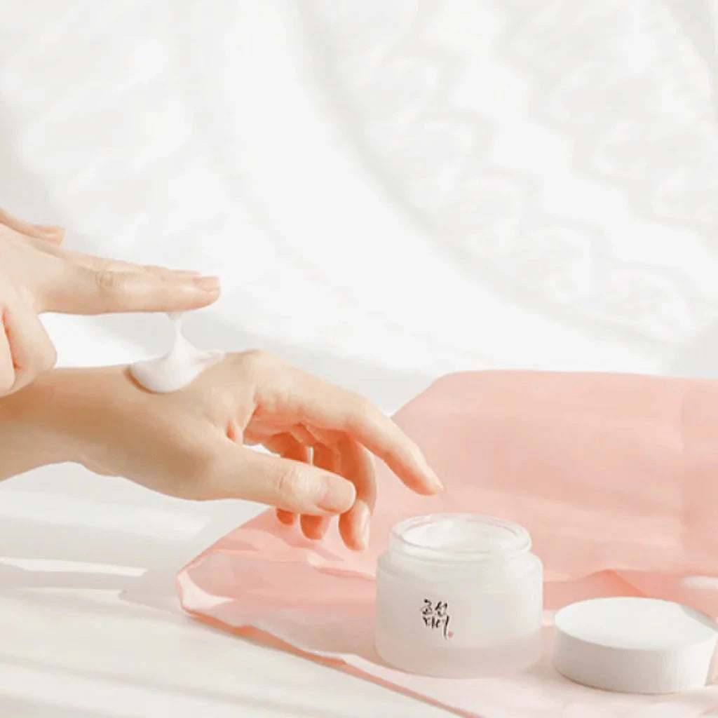 This cream has a rich, silky balm texture that melts into the skin effortlessly. It leaves a soft, glowy finish—moisturized but never greasy—perfect for both day and night use.